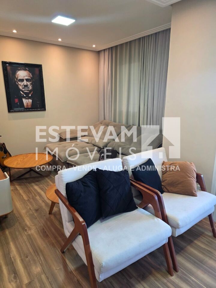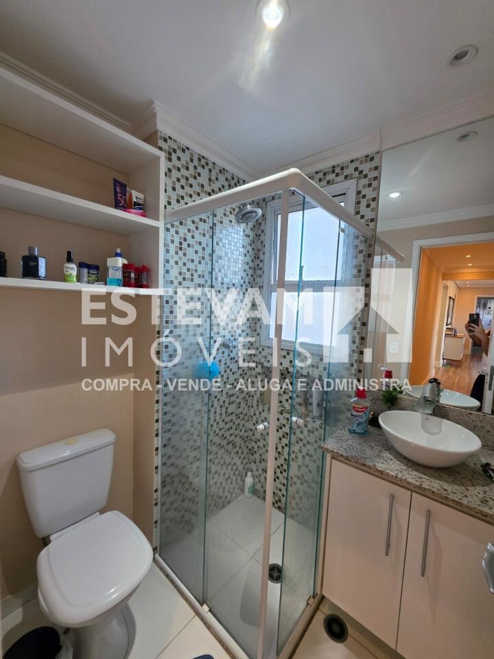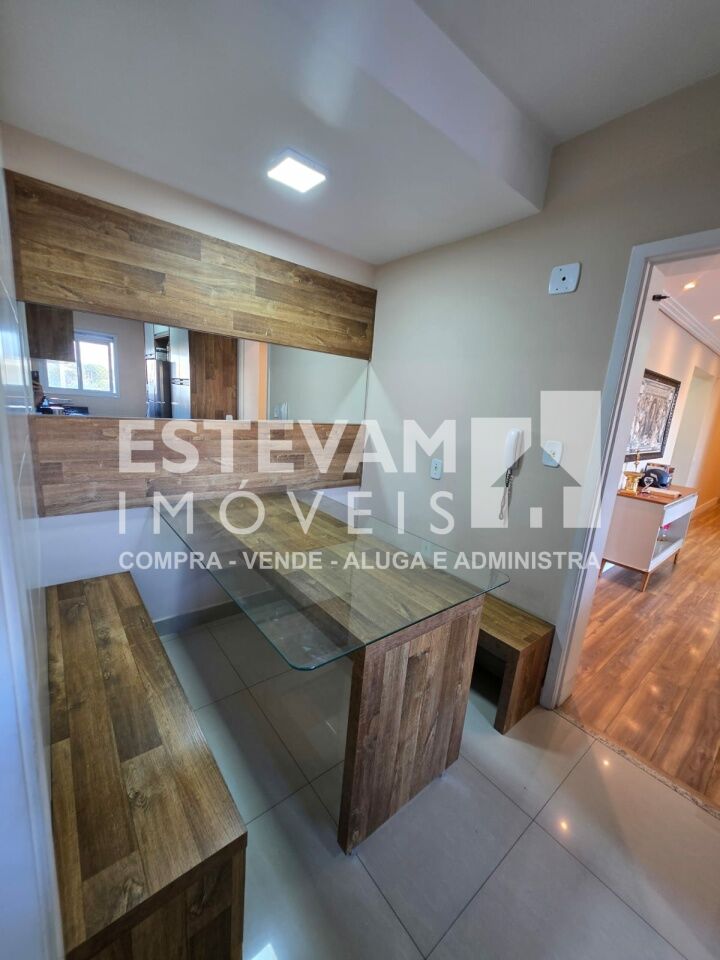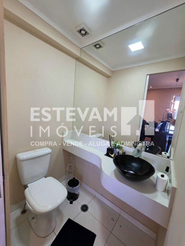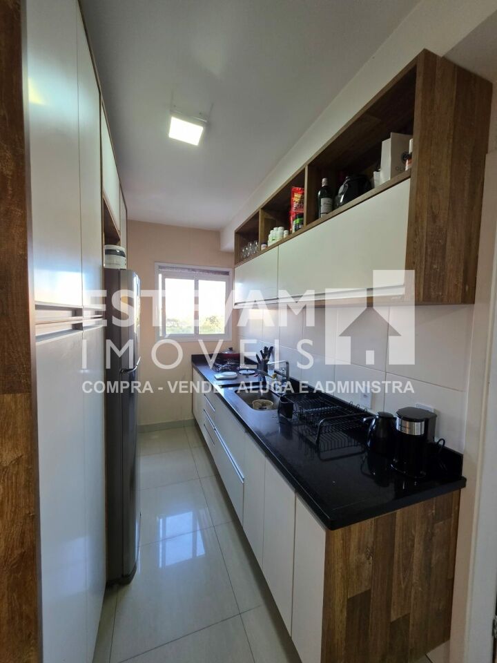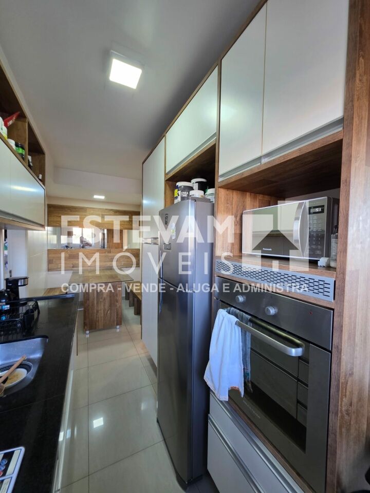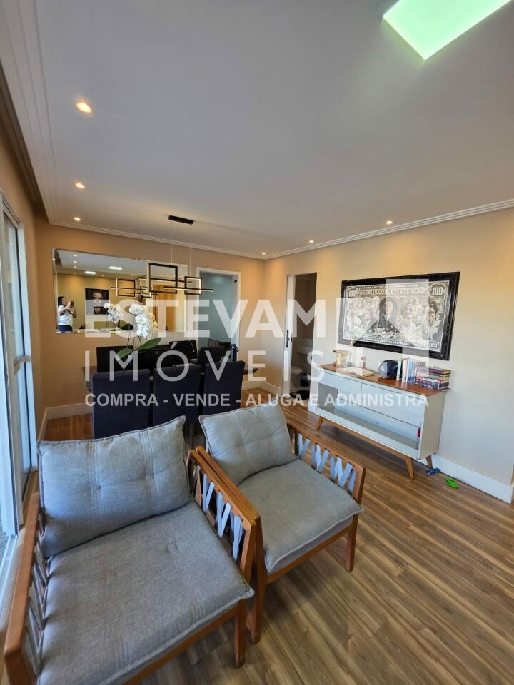 São 96m, distribuídos em 02 dormitórios sendo uma suíte, planta com sala ampliada, com planejados, 03 banheiros na totalidade sendo um lavabo e um social e a suíte, 02 vagas de garagem cobertas e fixas.