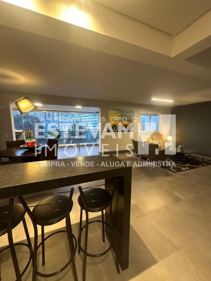 A suíte master possui closet e dois banheiros, podendo ser revertida para duas suítes separadas. Além disso, há mais uma suíte para hóspedes. A sala é em conceito aberto, com espaço gourmet integrado, perfeito para receber amigos e família.