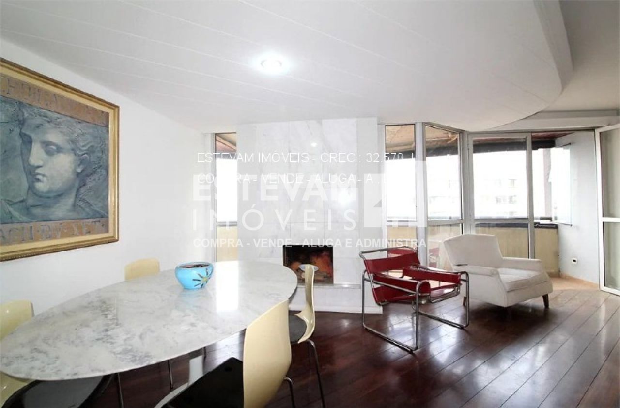 Com 4 quartos, sendo 2 suítes, uma espaçosa sala de 3 ambientes, 6 banheiros, e uma área total de 220,00 m2, este imóvel é repleto de comodidades. Além disso, possui um terraço com deck, lareira, piscina, churrasqueira, dependência de empregada e 4 vagas de garagem.