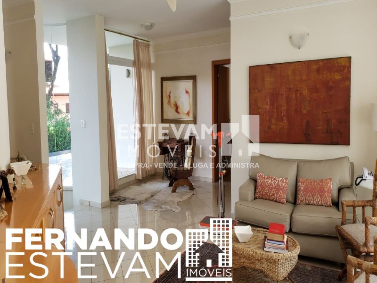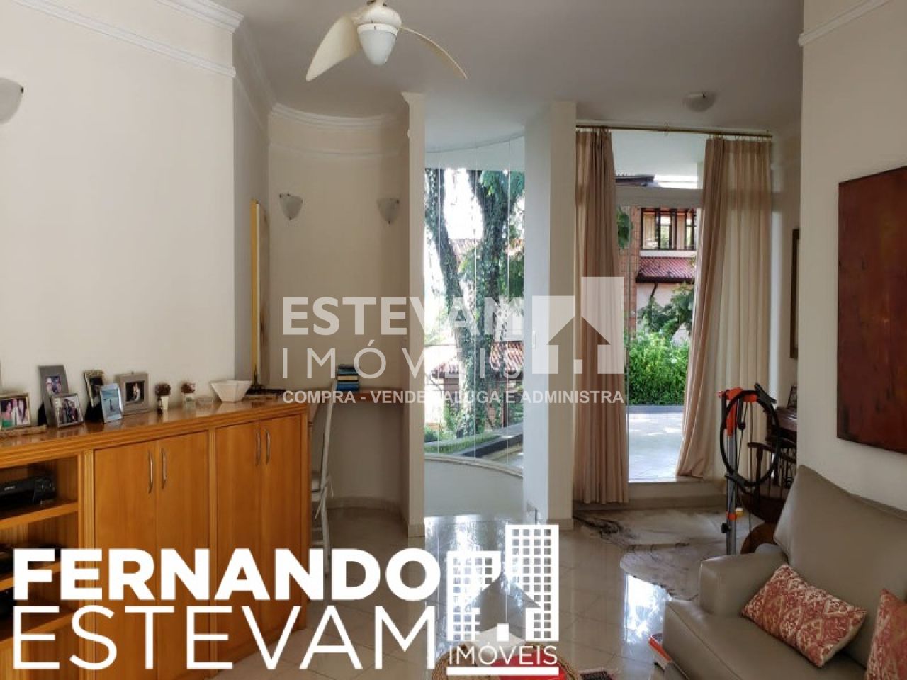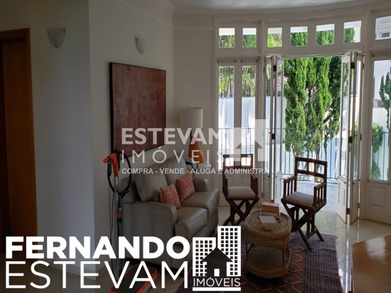 * Sala de TV com vista para o jardim;