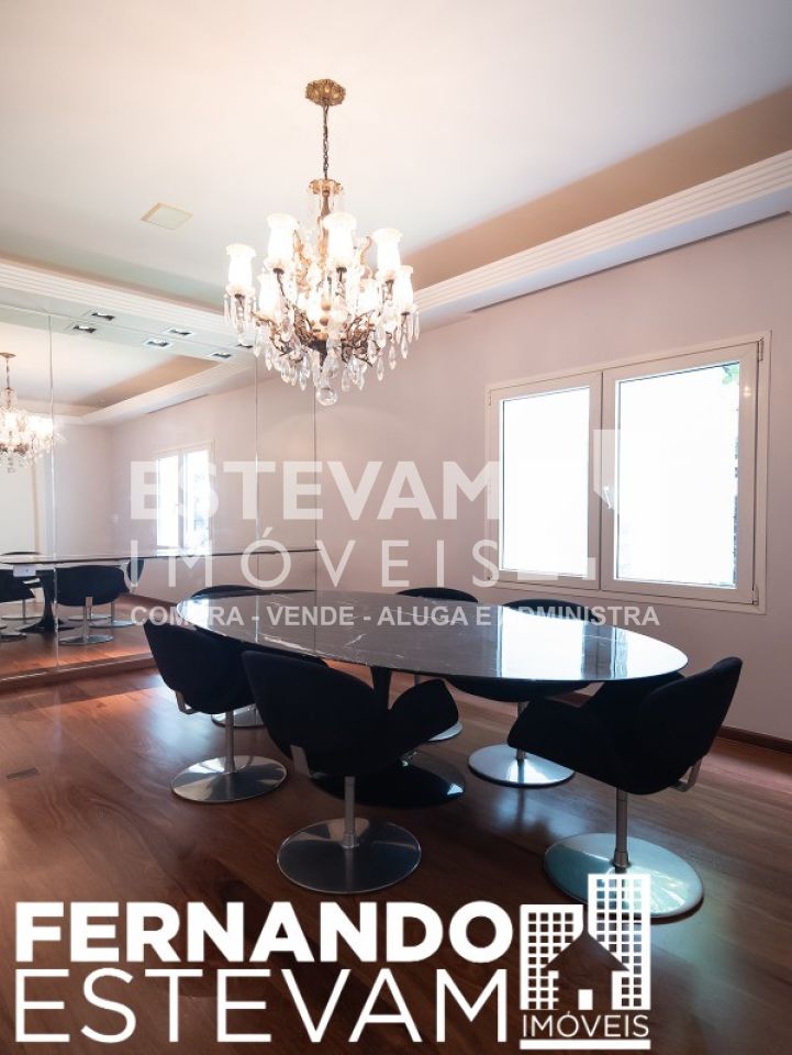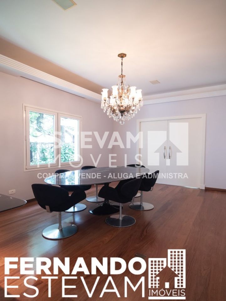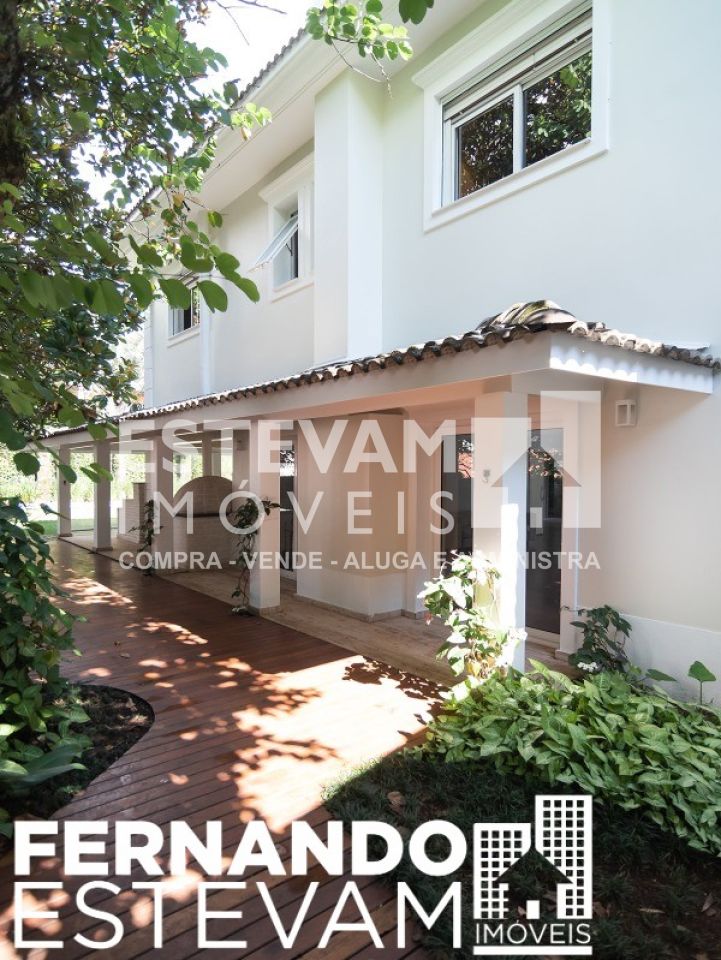 Condomínio fechado privativo com segurança e portaria 24 horas, amplas áreas verdes, ao lado do Parque dos Eucaliptos, áreas sociais com quadras poliesportivas e de tênis, churrasqueira e playground. Sobrado com 905 m² construídos, amplos ambientes internos e privativos com: